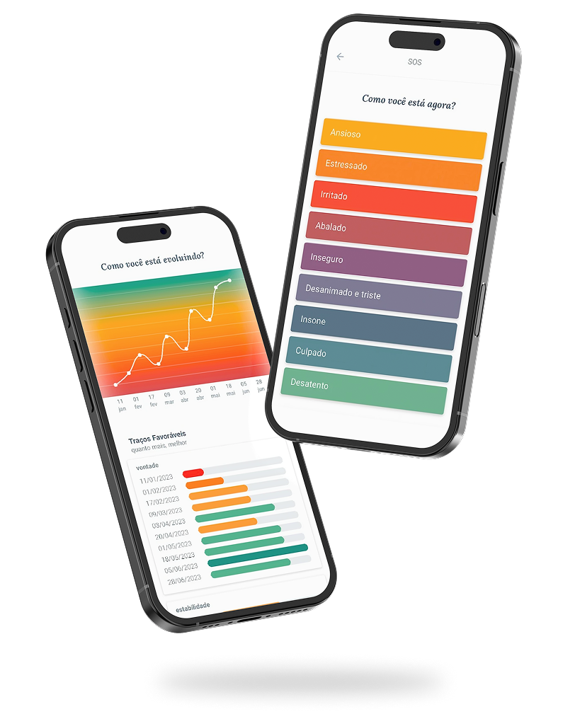 Aplicativo referência em terapia emocional digital com técnicas criadas pelo Dr Diogo Lara para guiar e promover autoconhecimento e alívio emocional.